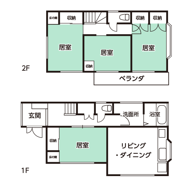 - 玄関、風呂、洗濯機、トイレ、台所、リビングエアコン、消防設備完備