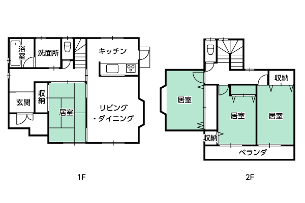- 玄関、風呂、洗濯機、トイレ、台所、リビングエアコン、消防設備完備