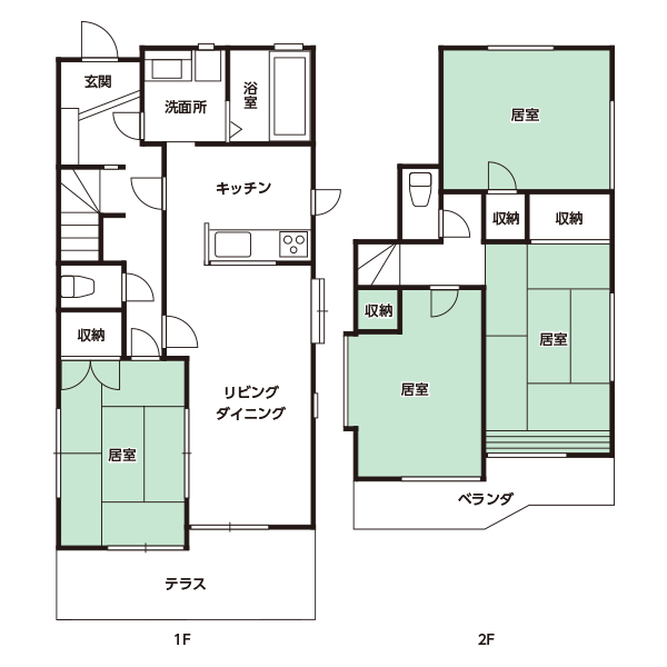 - 玄関、風呂、洗濯機、トイレ、台所、リビングエアコン、消防設備完備